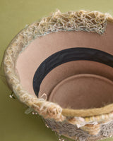 帽子のフォルムは、クラシックなカサブランカ型。戦前から変わらぬ製法で、熟練の帽子職人が木型に入れて一つひとつ丁寧に成形しました。