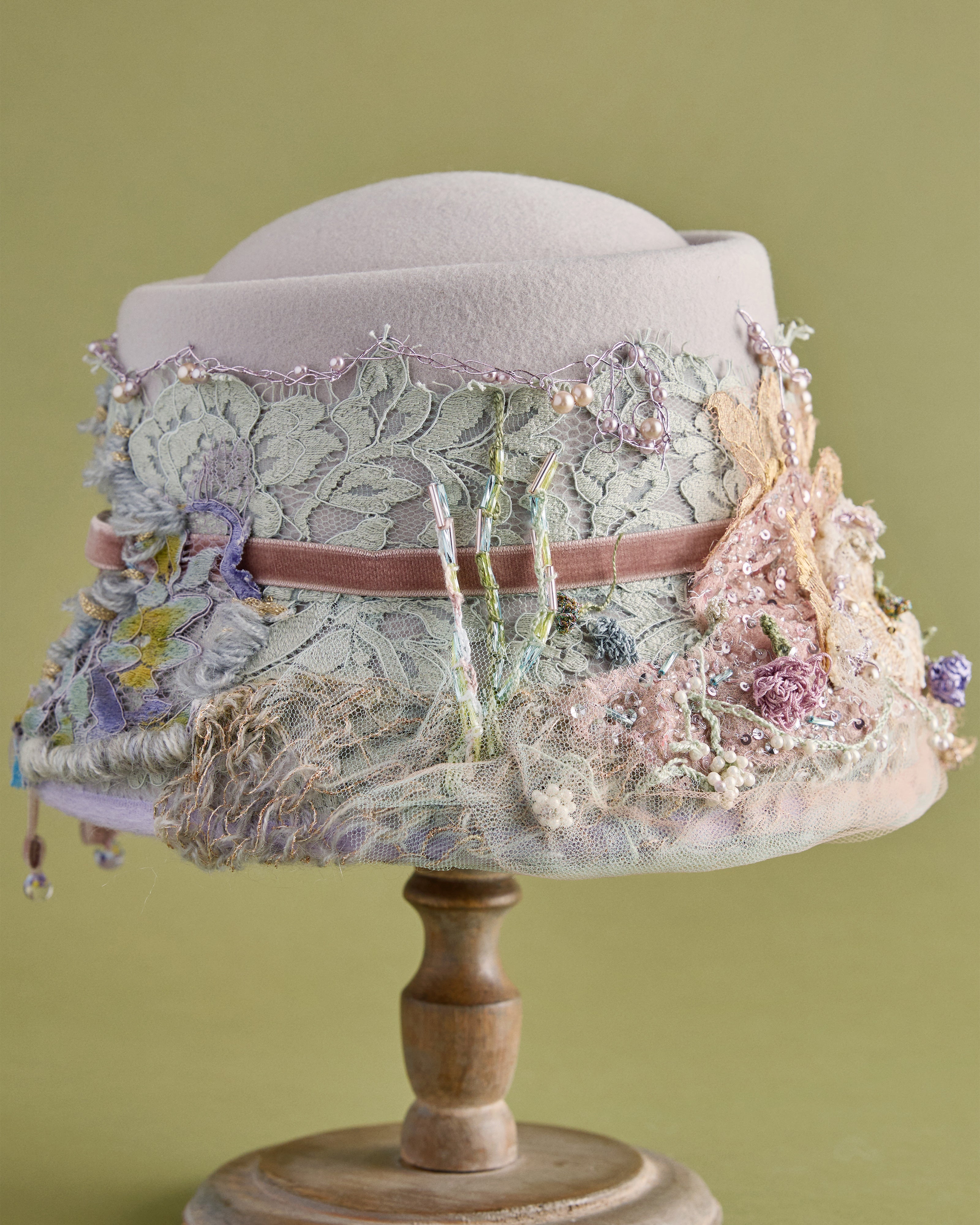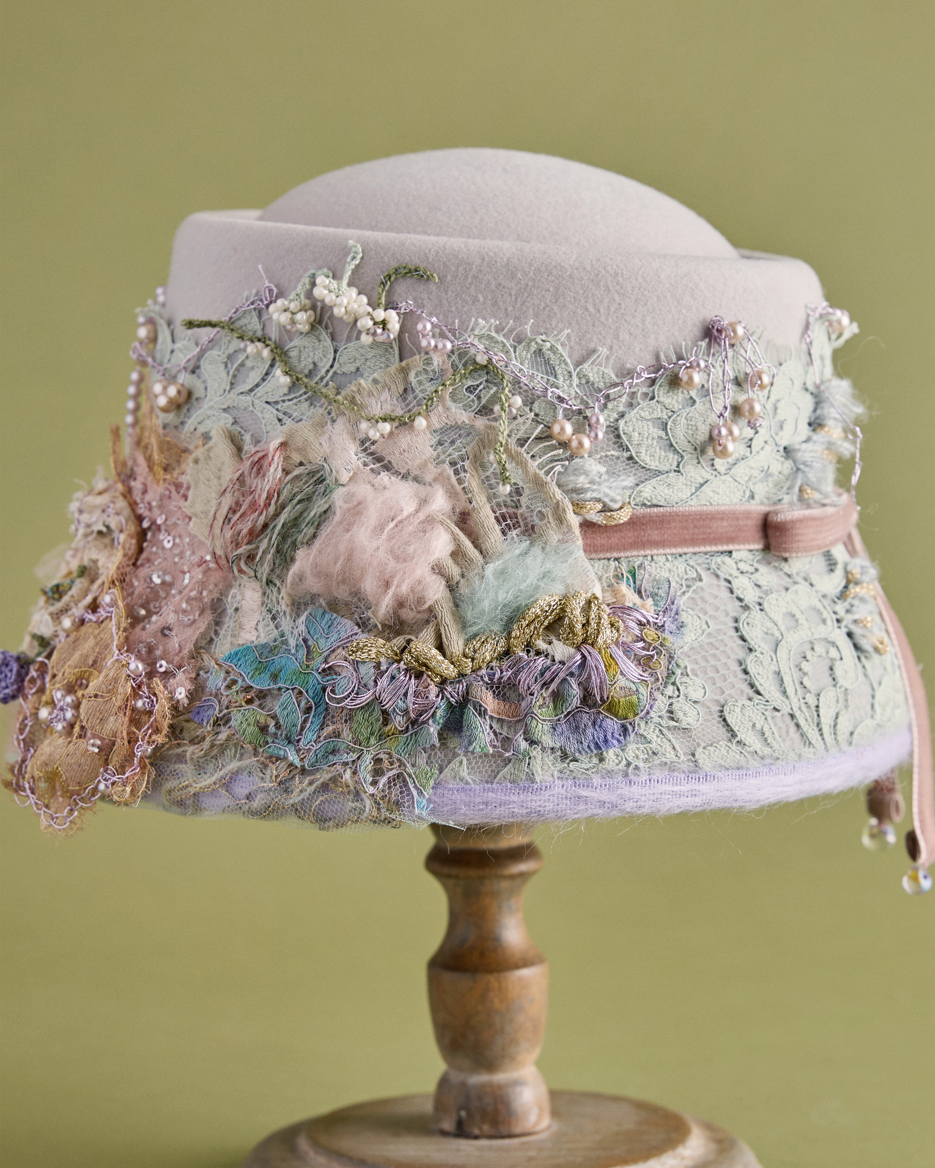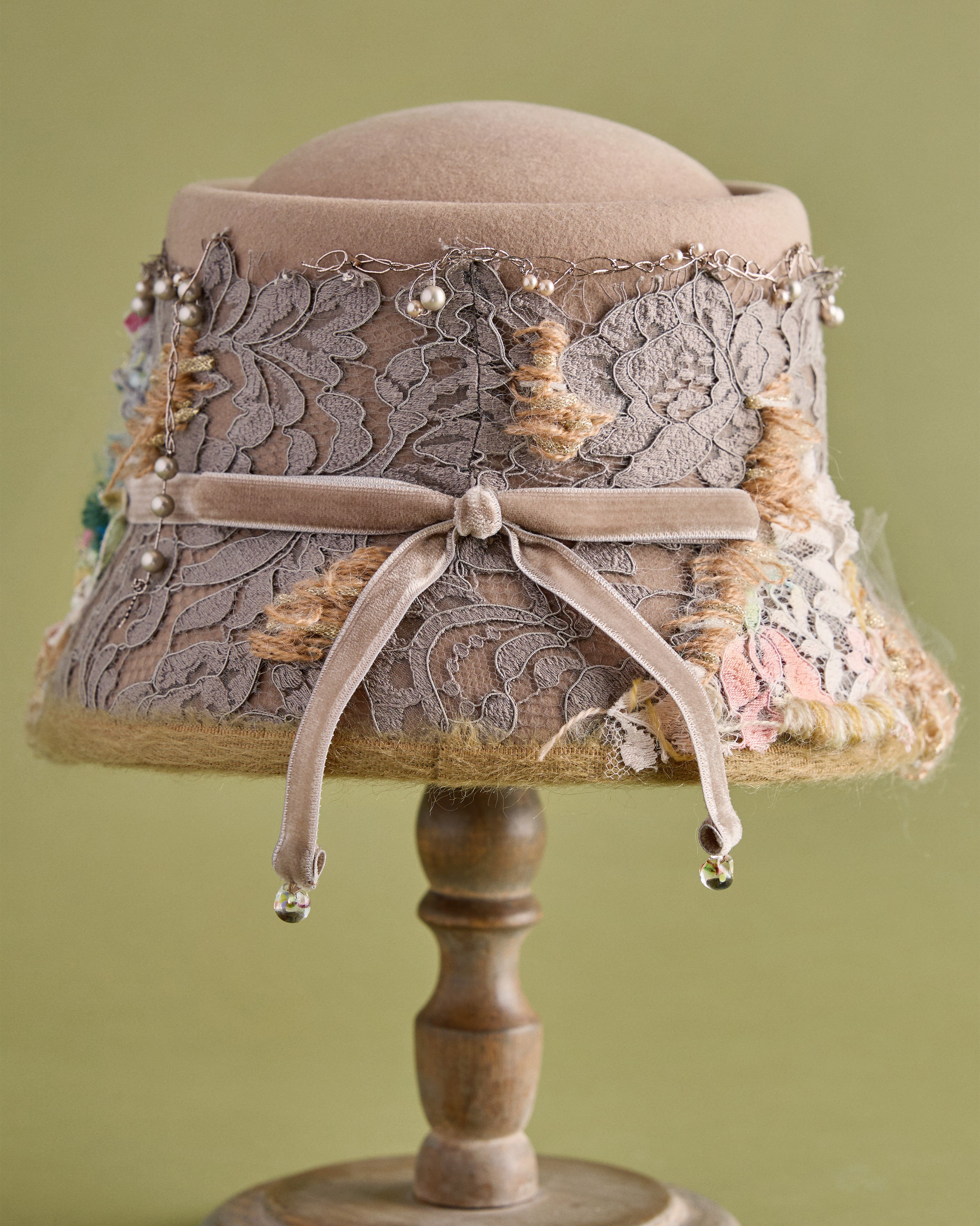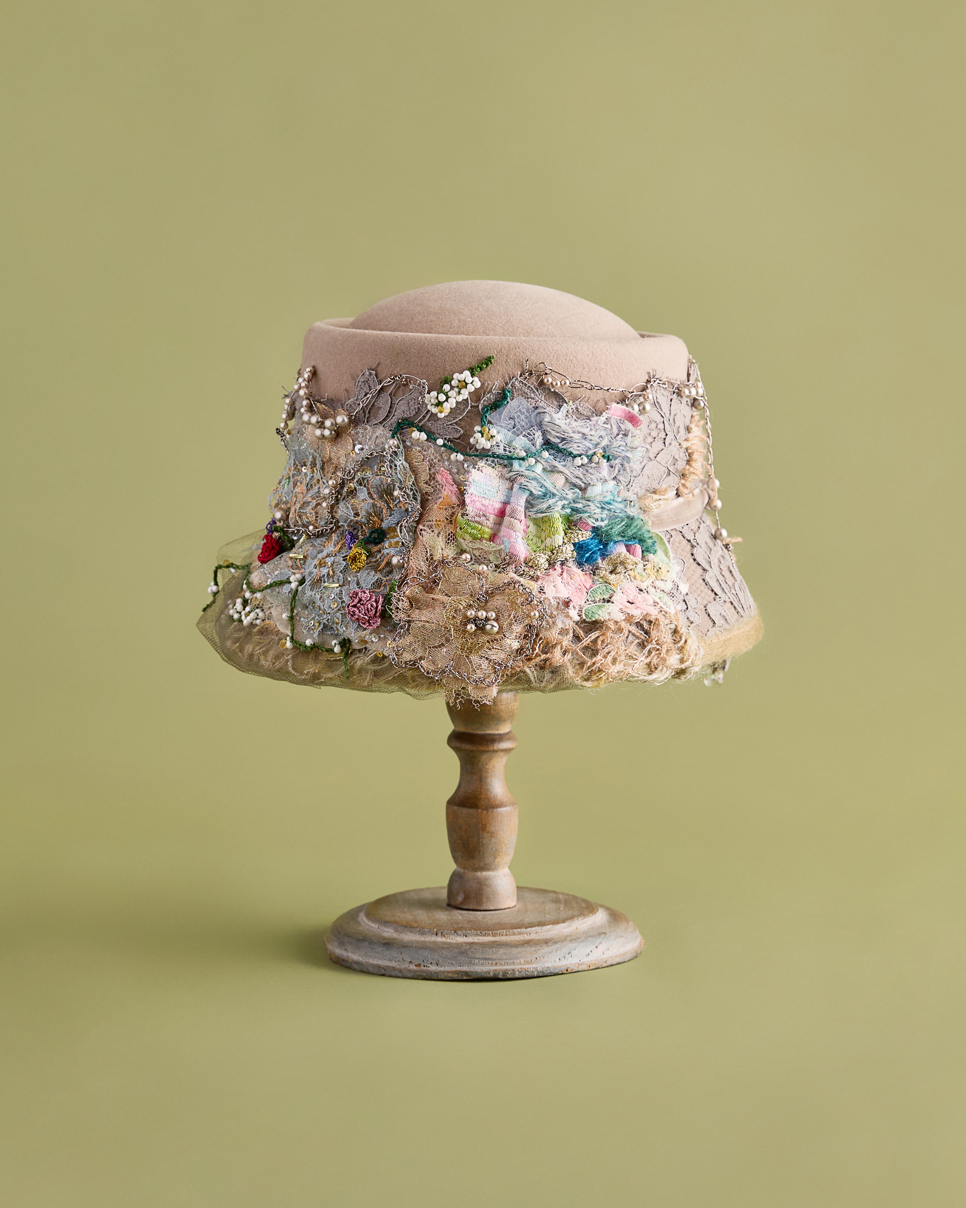 カラーは2色展開。Beigeはミレイの描いた「オフィーリア」そのままをイメージした色合い。MintはCIRQUTURE独自の解釈による、より淡く儚いファンタジックな色合いのオフィーリア。どちらも、帽子でありながらアートそのもののような存在感を放っています。「頭に乗せるアート」として、お客様に纏っていただけることを願っています。