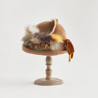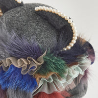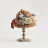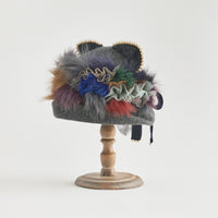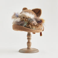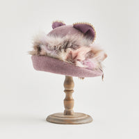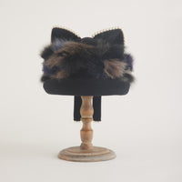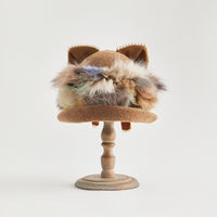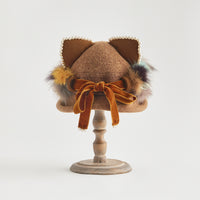 帽子本体はバスクといわれる製法で、ウールのニットを縮絨してしっかりさと温かさをだしています。そちらに猫耳をあしらいファンタジーな要素を加えました。