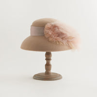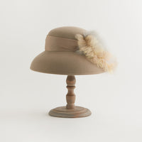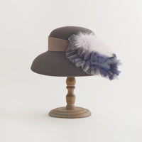 アンティークの木型で製作したハットで、クラウン、ブリム共に美しい膨らみと曲線を持ったボディです。