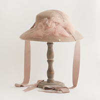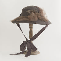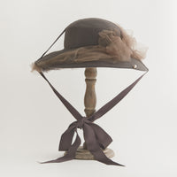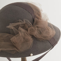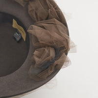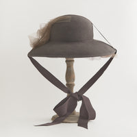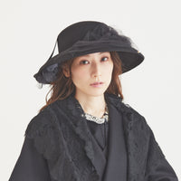 アンティークの木型を用いて成型しました。クラウンのトップには膨らみがあって、頭に馴染み、心地よく被ることができます。やや広めのブリムはエレガントな曲線を描き、女性のお顔を本当に妖艶に見せてくれます。