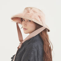 少し湾曲したつば裏から飾りがチラッと覗き、見る人をドキッとさせます。