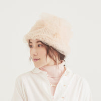 手仕事に手仕事を重ねた唯一無二の存在感のあるニット帽です。