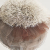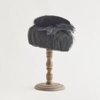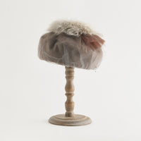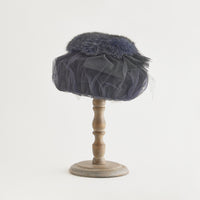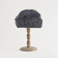 カシミヤ混の上質なウールフラノをチュールで包み込んだだエレガントなベレー帽。