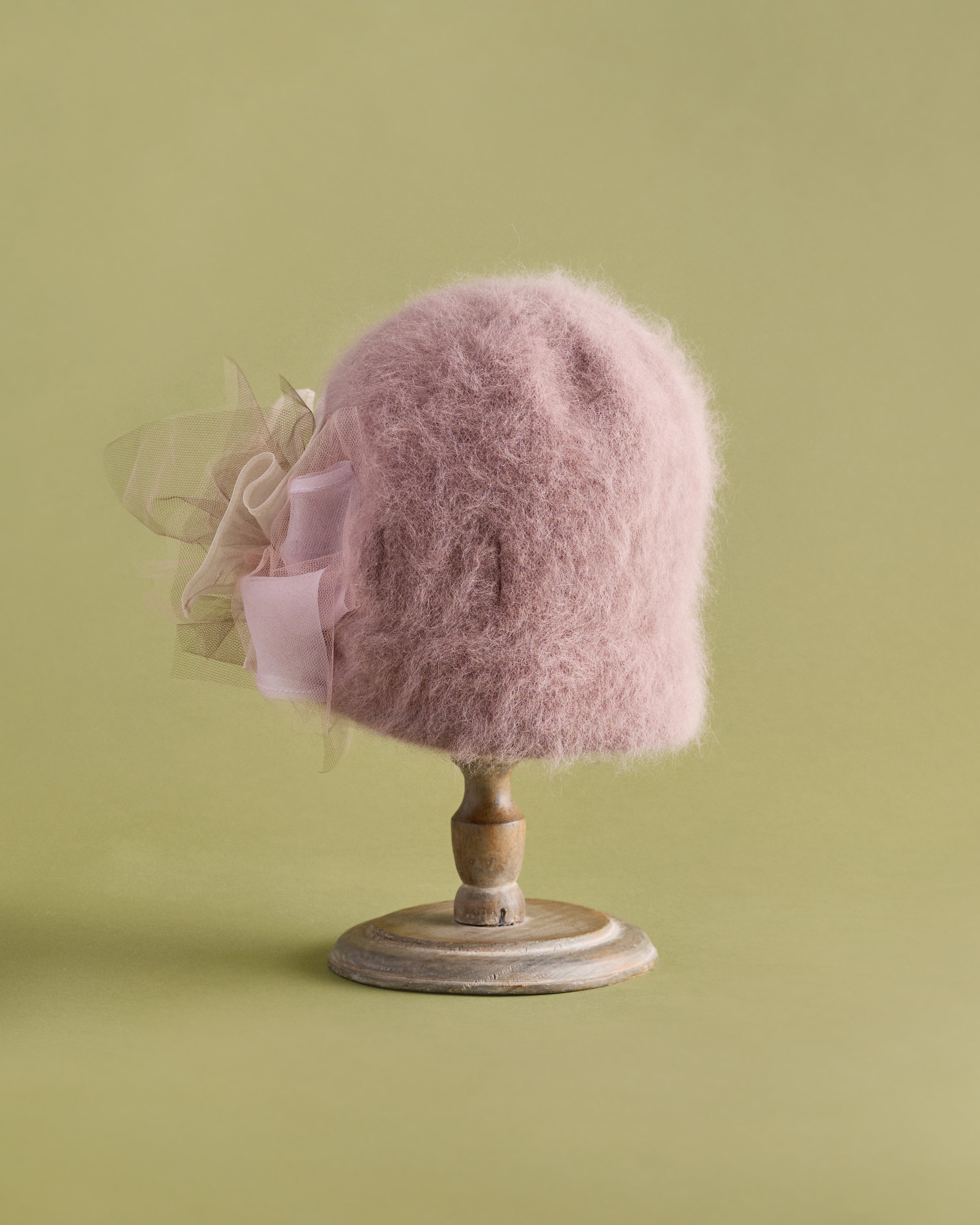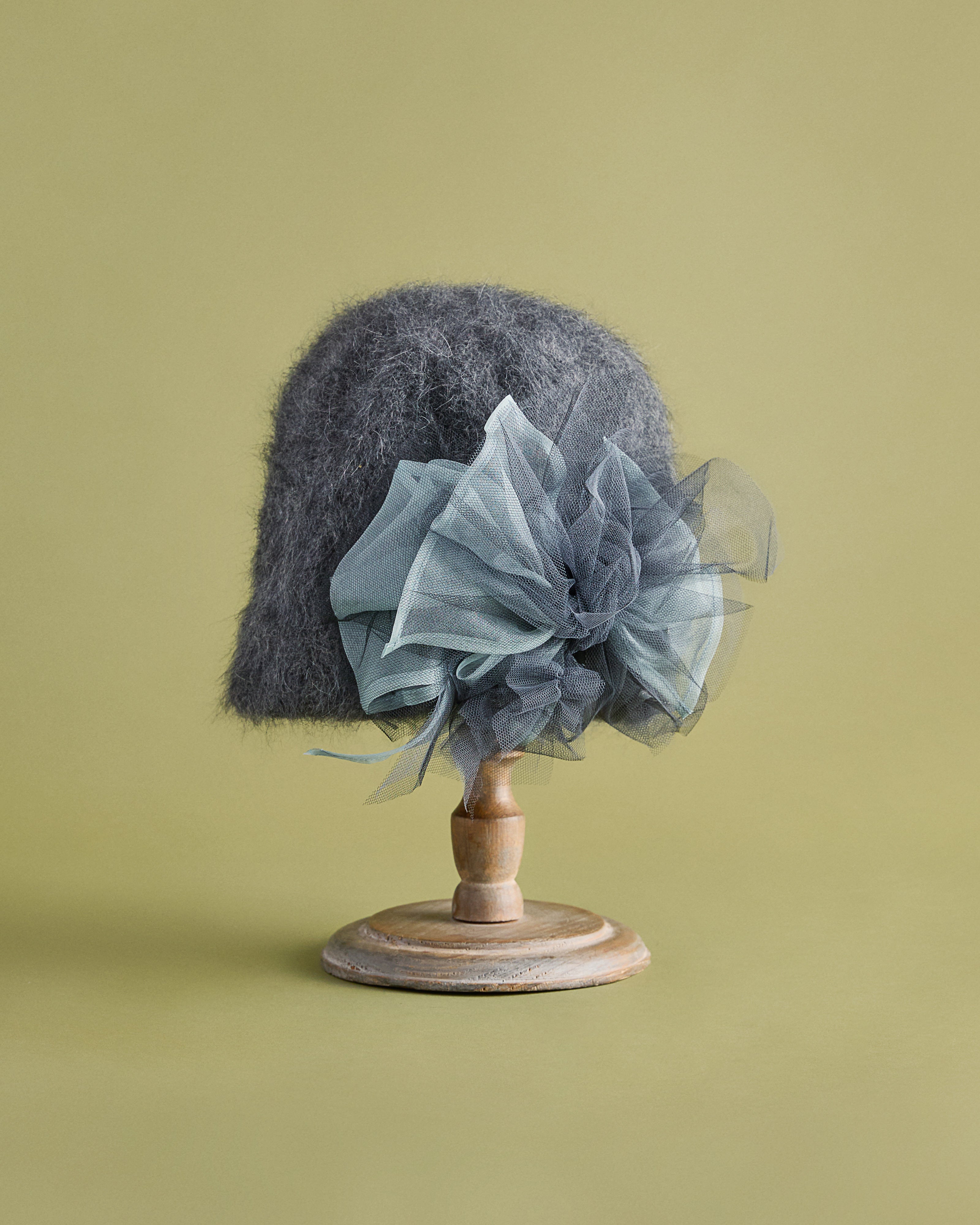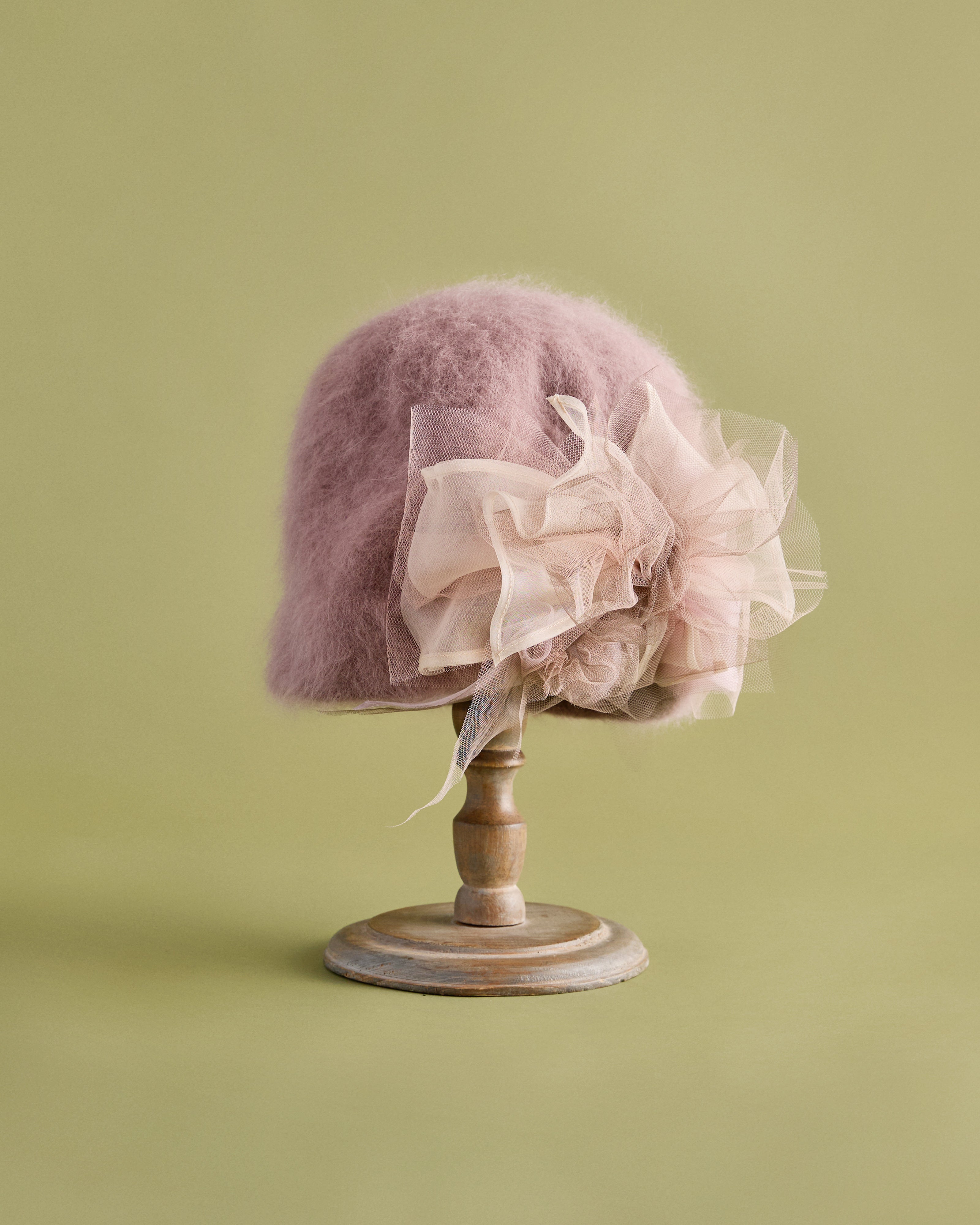 アンゴラ100%のバスクニットはとても軽く、しっとりとした温かさで頭をやさしく包み込みます。長時間かぶっても疲れにくく、つばがないため室内でも気兼ねなくお楽しみいただけます。