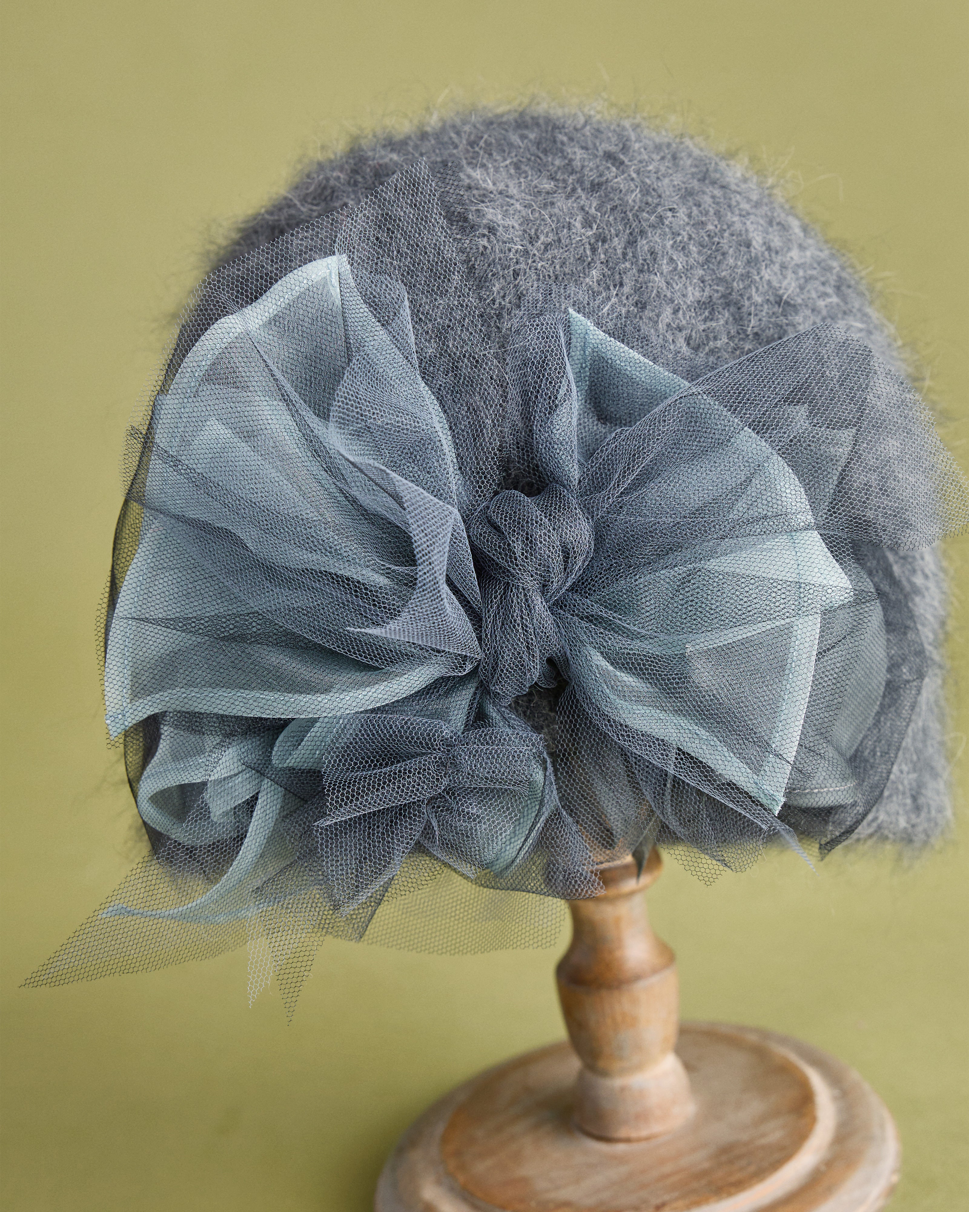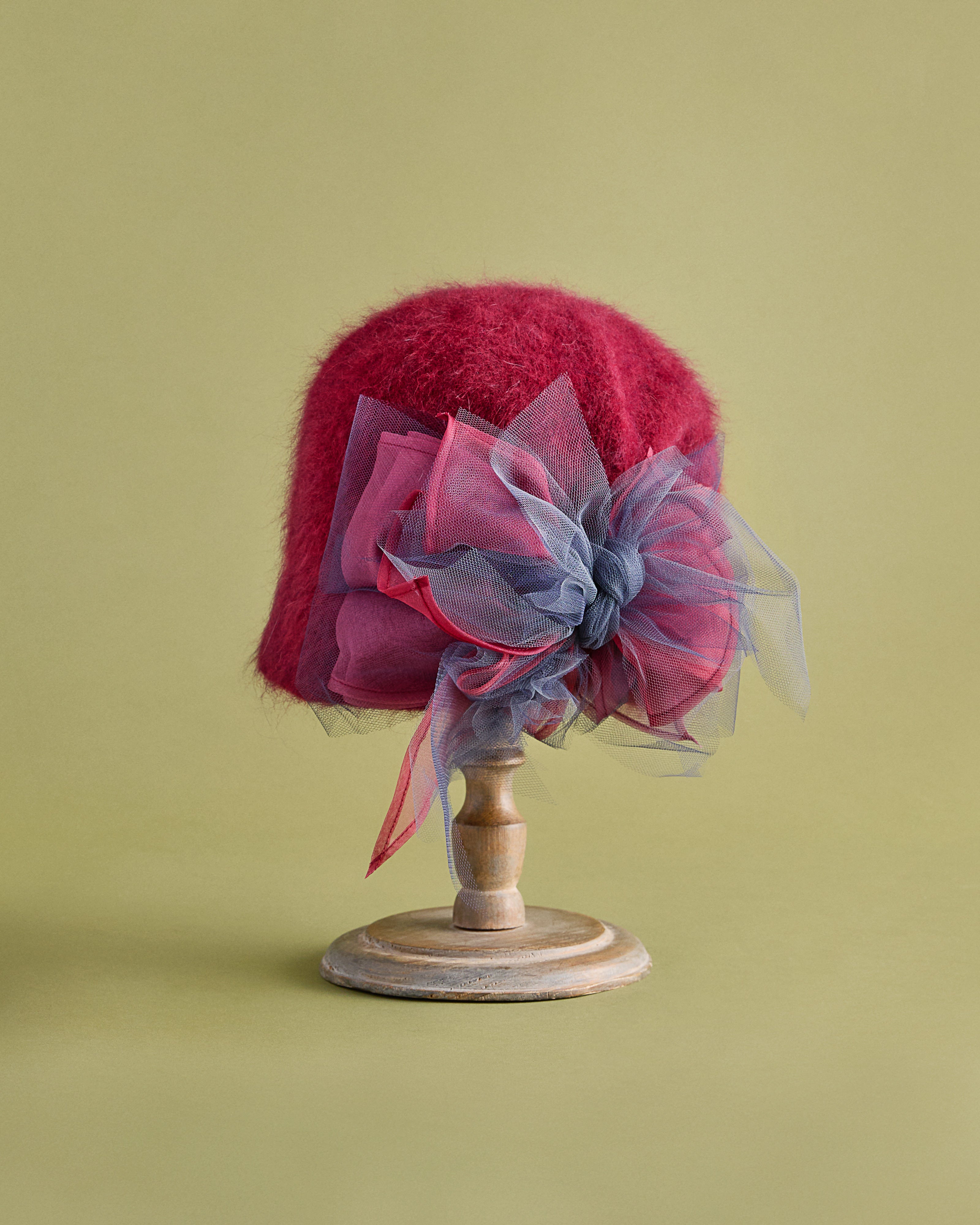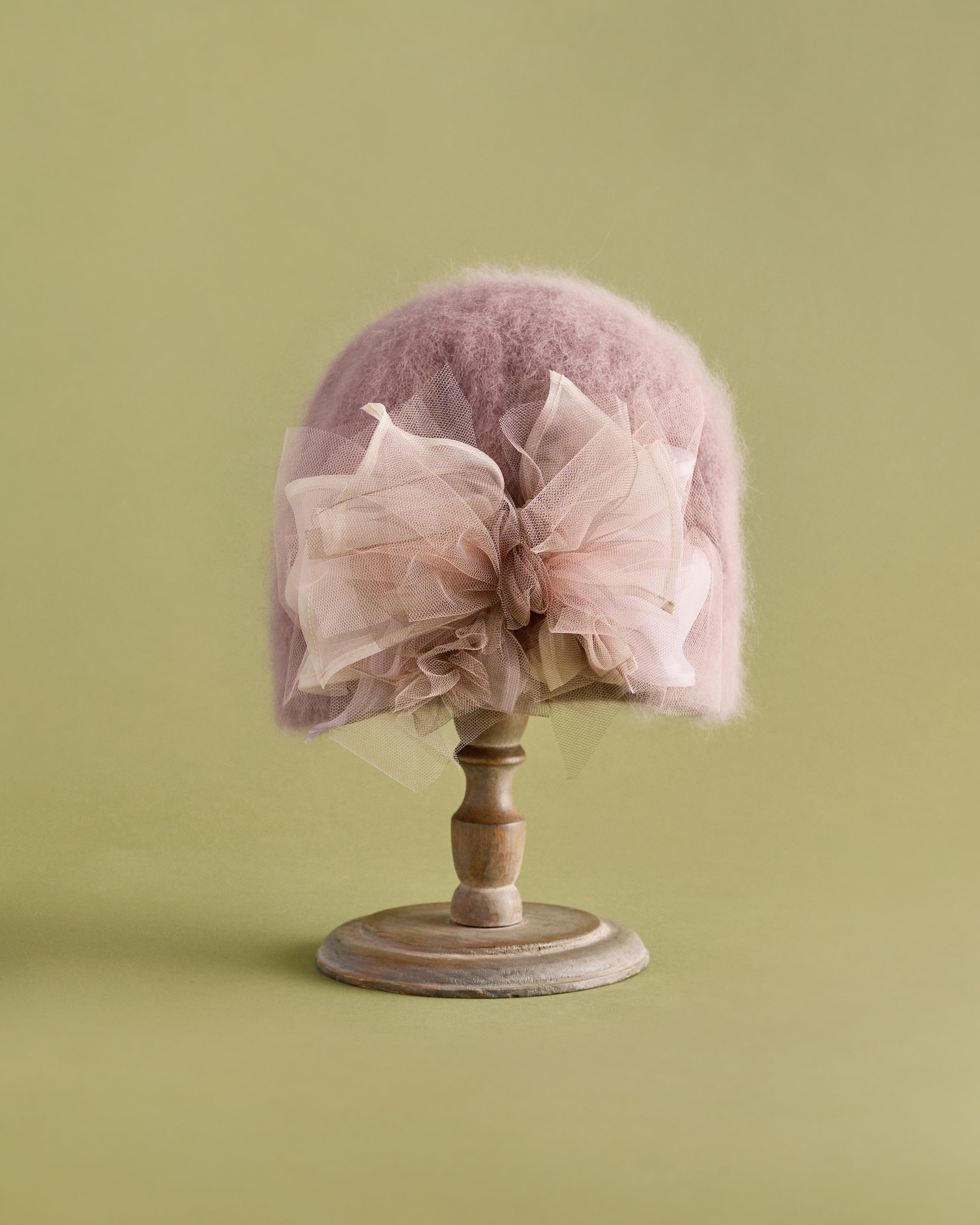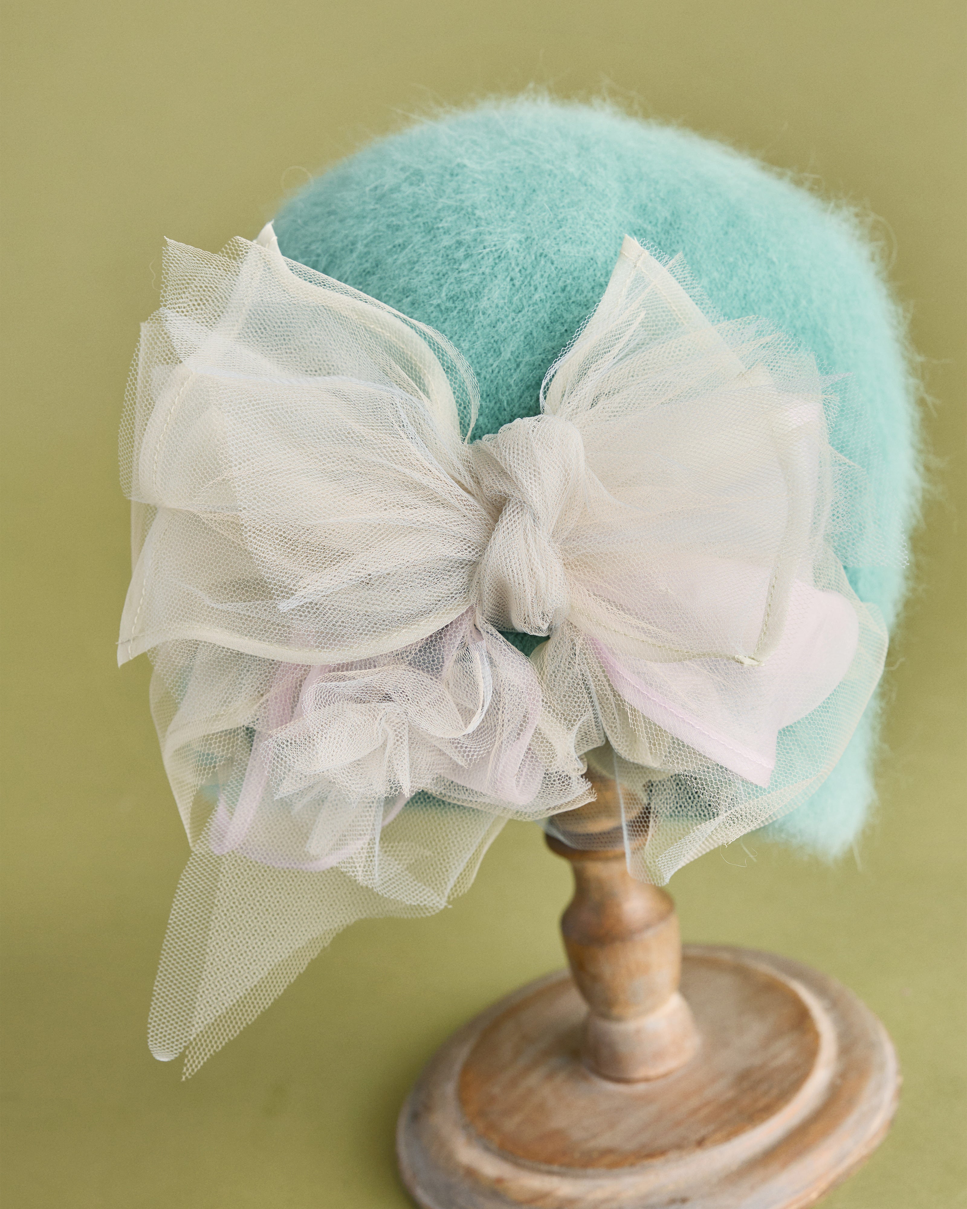 アンゴラ100%のバスクニットはとても軽く、しっとりとした温かさで頭をやさしく包み込みます。長時間かぶっても疲れにくく、つばがないため室内でも気兼ねなくお楽しみいただけます。