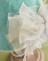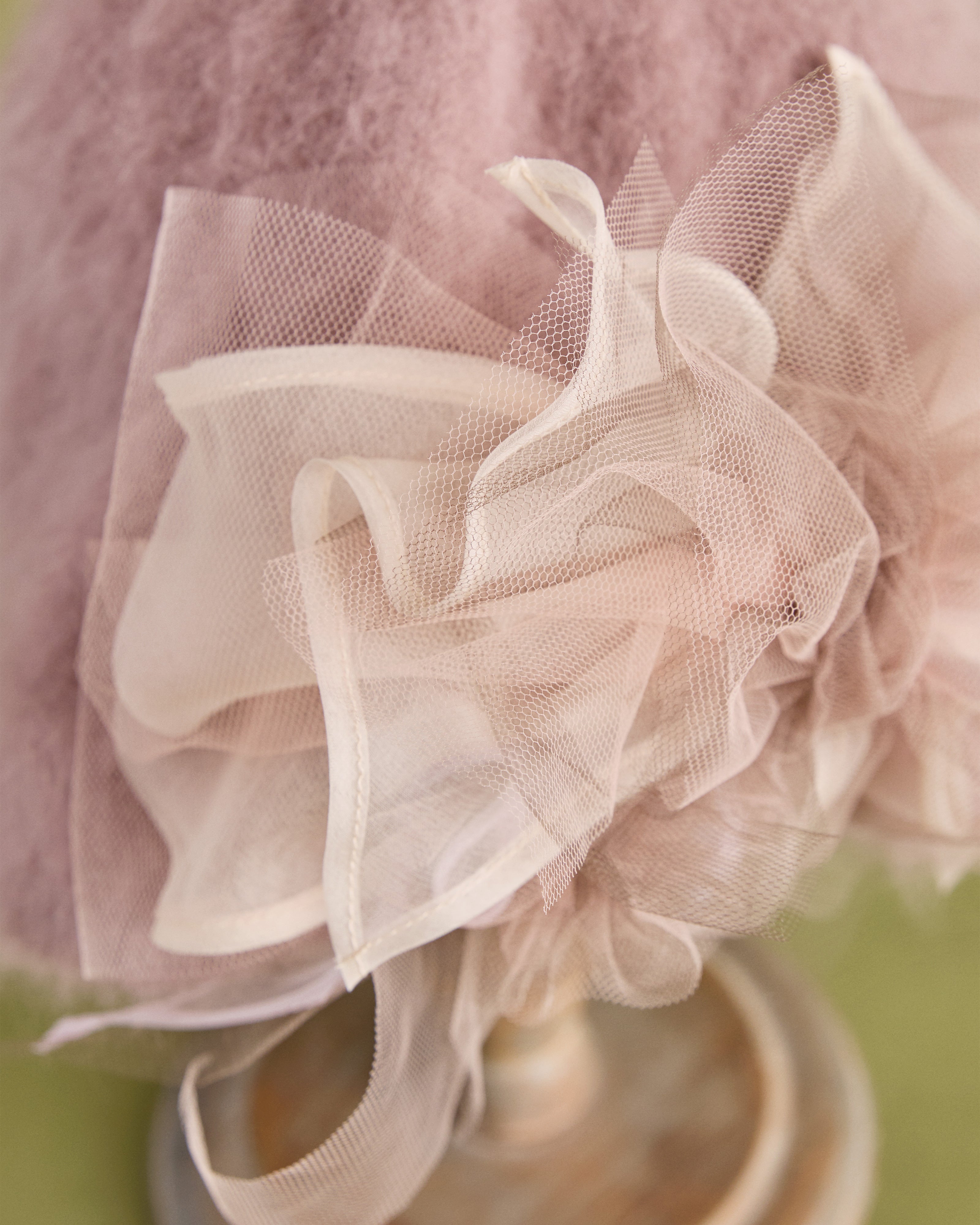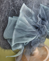 ボディの軽やかさを損なわないよう、飾りにはシルクオーガンジーとチュールを使用し、