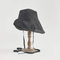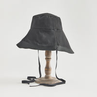 独特なフォルムが特徴の毎日気軽に被れるハットです。帽子を被るという事が苦手な方でもかぶっていただけるよう、従来のスベリと呼ばれるサイズを出すテープを取り払い、頭を優しく包むという感覚でデザインしました。クラウンを極力浅くすることで、ヘアスタイルが崩れにくく、ふんわりとしたかぶり心地を実現しています。