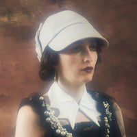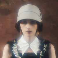 ブリム先端のパールの飾りは、樹脂のパールではなく天然の貝からできていて、より真珠に近い風合いになっています。