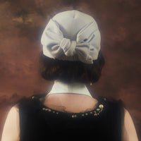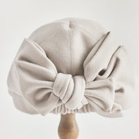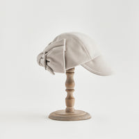 後ろに飾ったリボンは、華やかですが本体と共生地にする事によって主張しすぎないように馴染ませています。