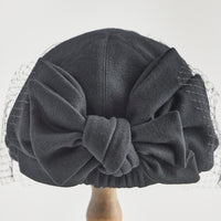 後ろに飾ったリボンは、華やかですが本体と共生地にする事によって主張しすぎないように馴染ませています。