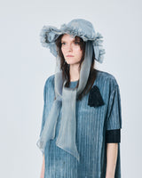 光と影をまとう、咲き方自在なフラワーブリム。ミステリアスな美しさをまとい、機能性と感性が共鳴する軽やかなフリルハットです。