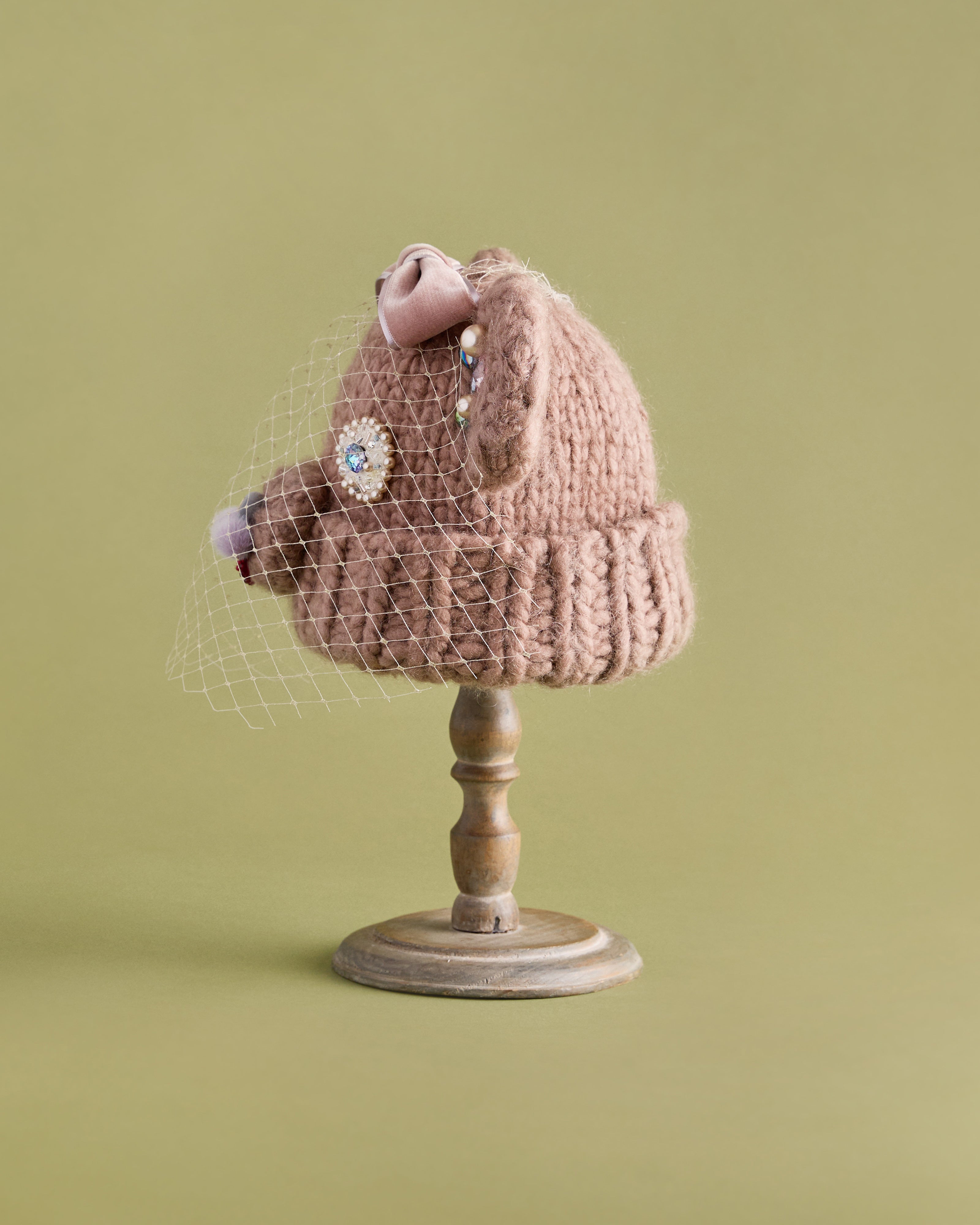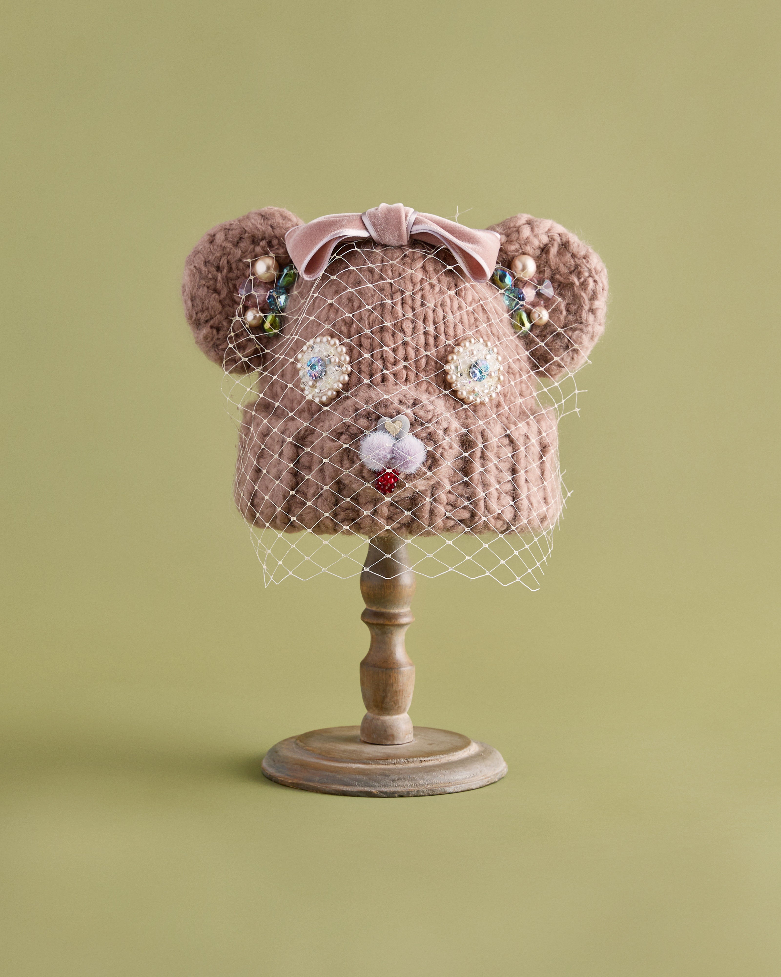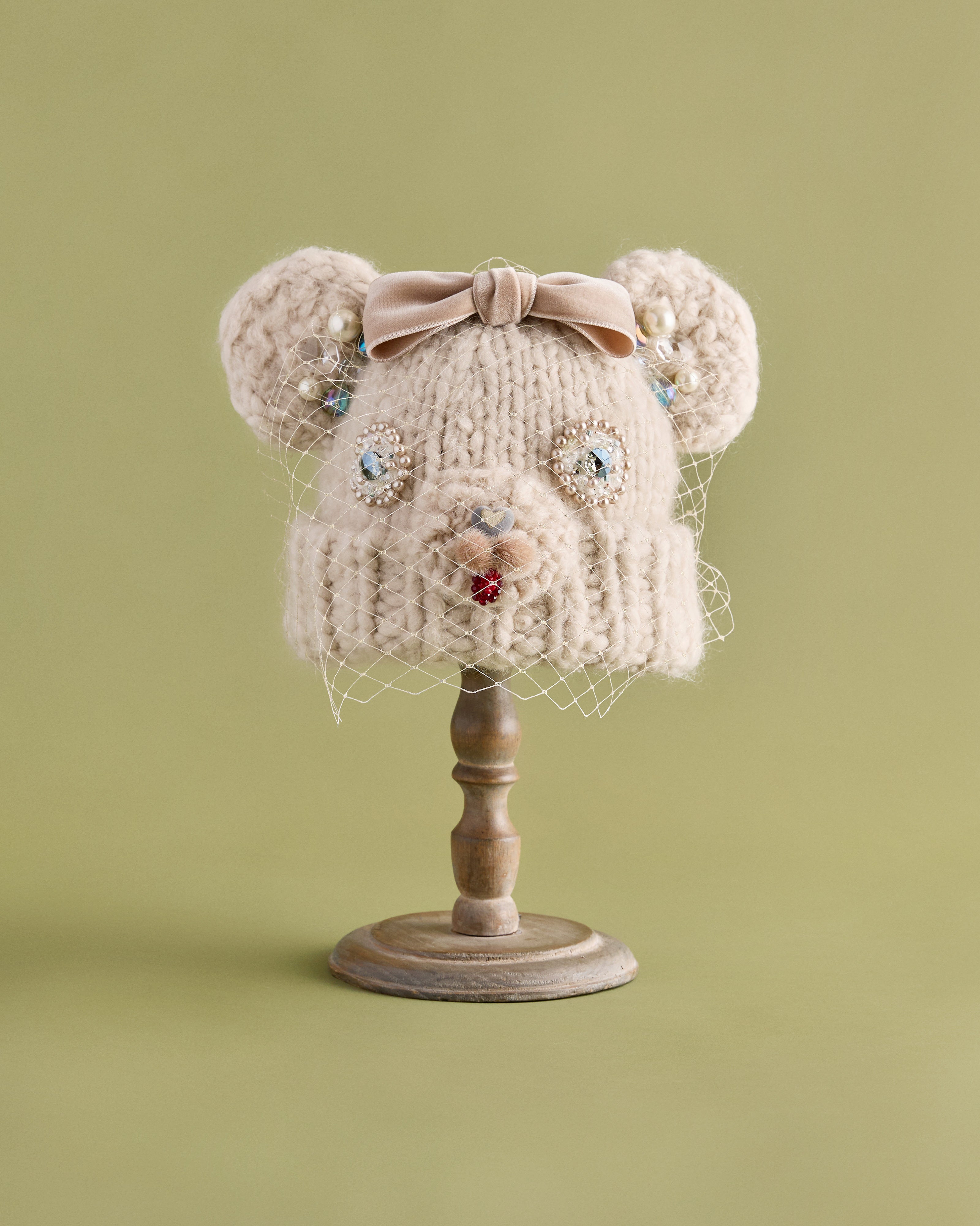 オールハンドメイドで仕立てた、クマさんのニット帽。毎年人気のある「ハンドメイドアニマルシリーズ」、2025年は待望のクマさんが登場です。