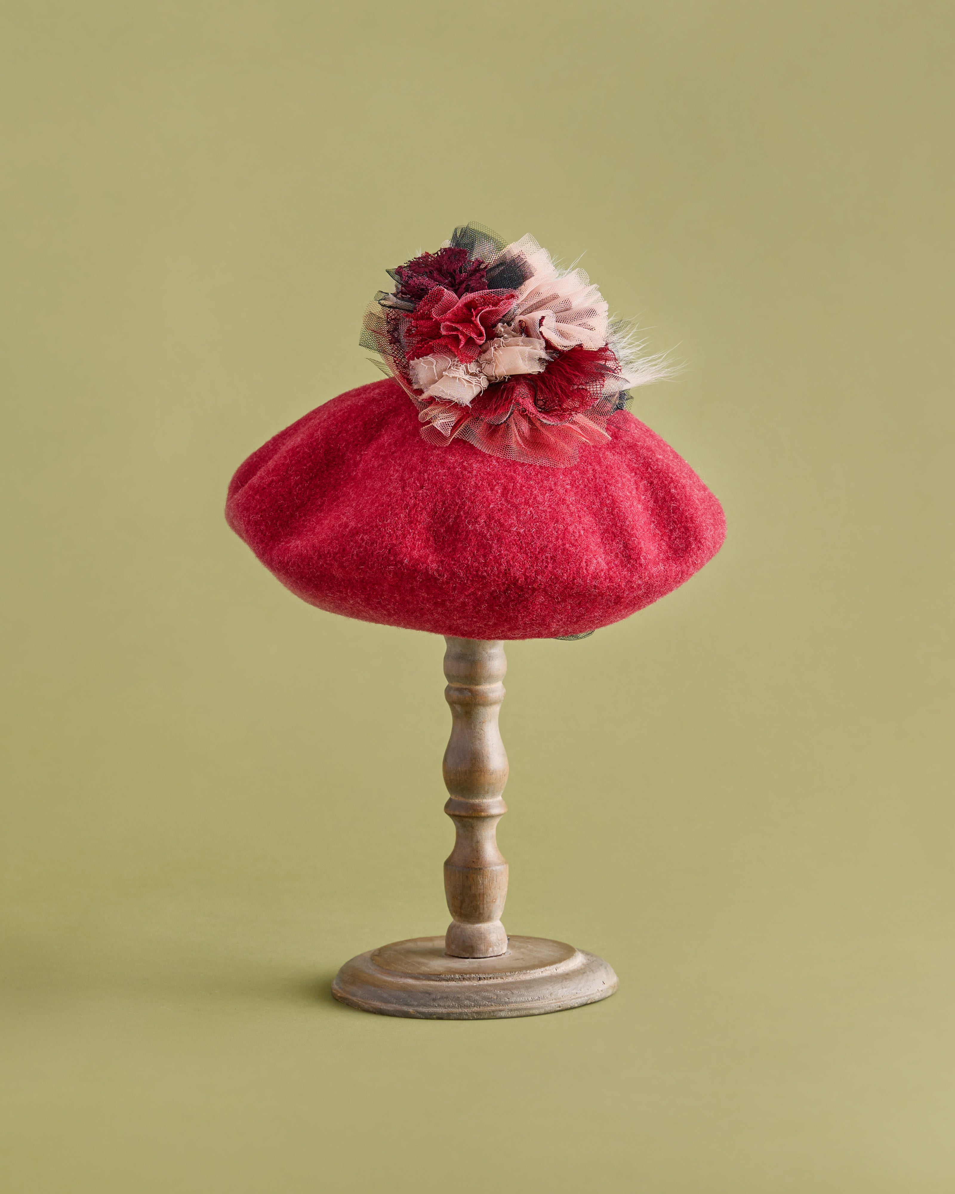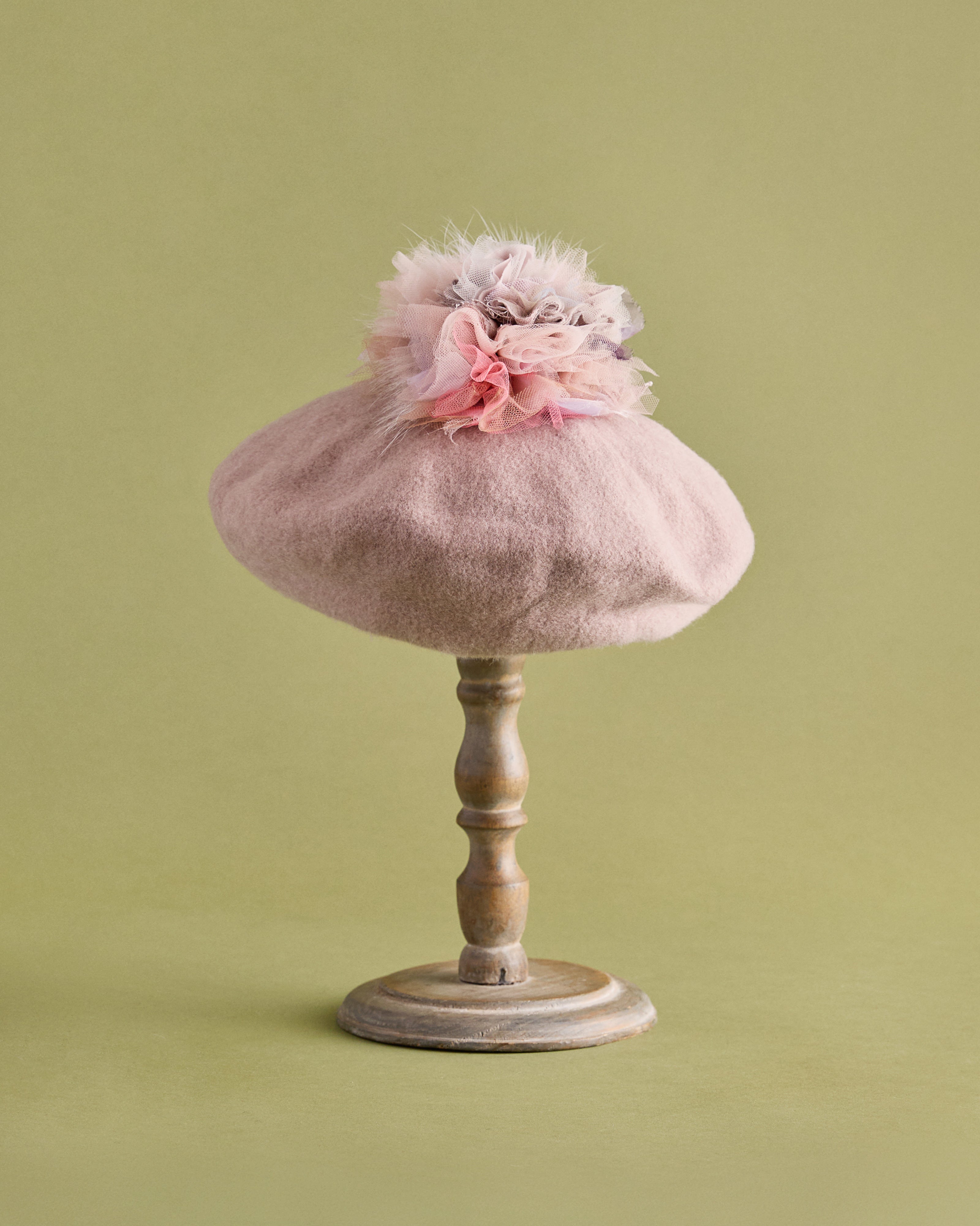 素材はウール100%。縮絨加工を施しているため、ニット製品よりも張りがありながら、型物の帽子ほど硬すぎず、扱いやすさに優れています。普段使いにもおすすめです。2つ折りにして手纏りを施すことで、ほどよい厚みときちんとした印象を演出しています。