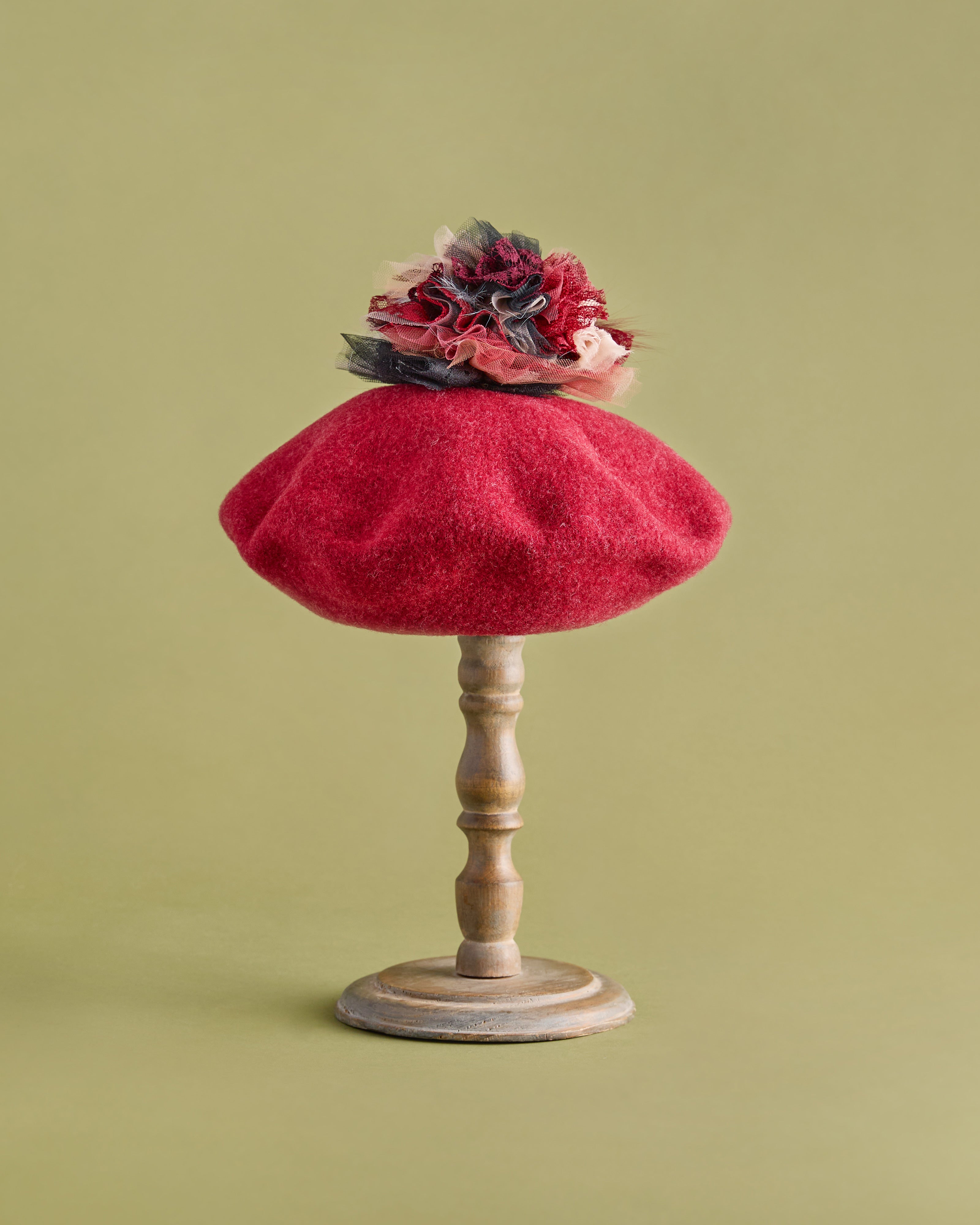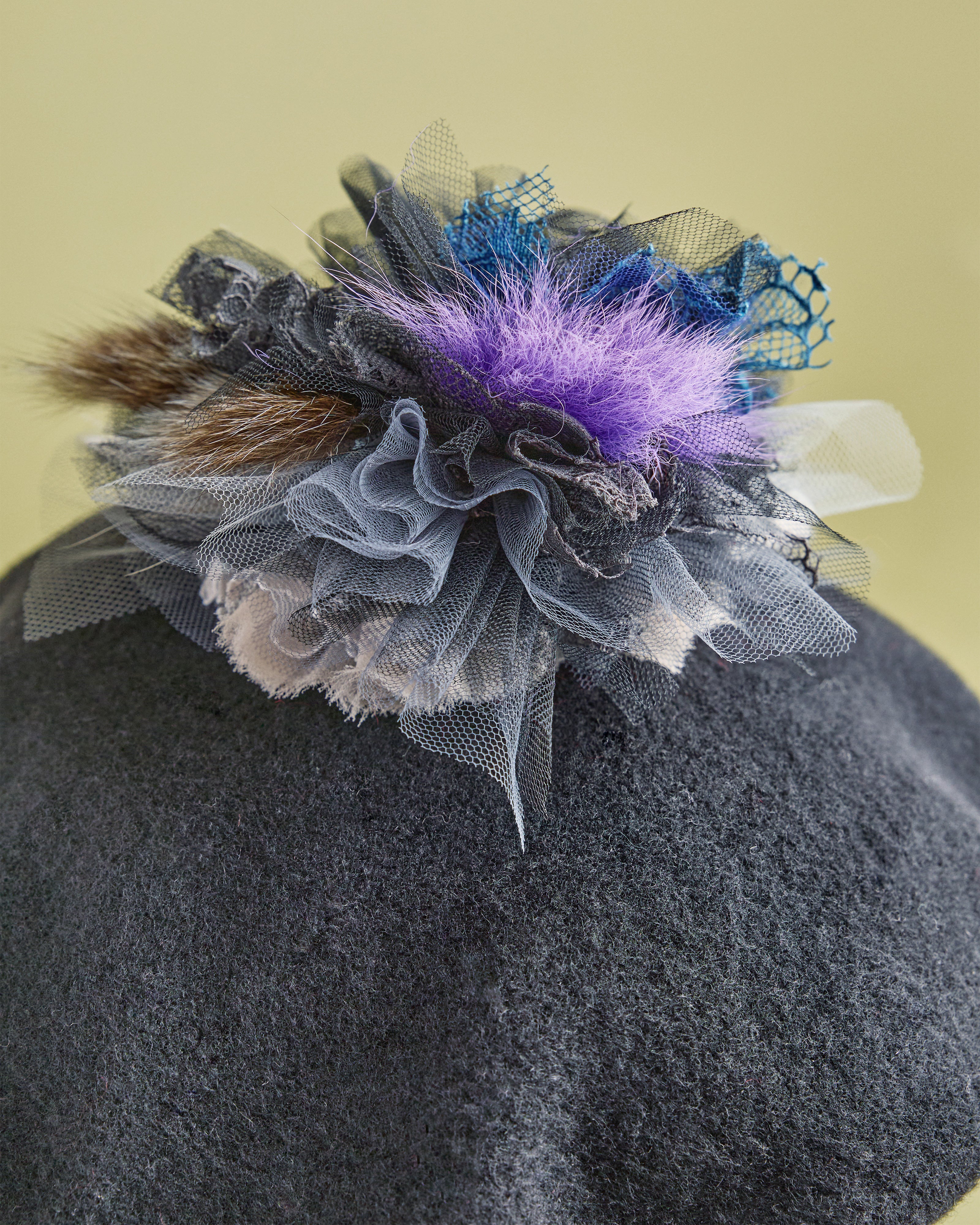 CIRQUTUREのものづくりから生まれた布のかけらを、大切に切り取り、組み合わせて仕立てたポンポンブローチです。チュール、レース、オーガンジー、FOXファーパーツなどを使用し、同じものはひとつとして存在しません。布のかけらから生まれる唯一無二の物語を紡ぐ飾りです。
