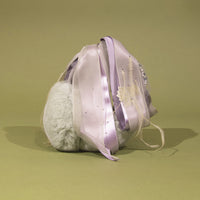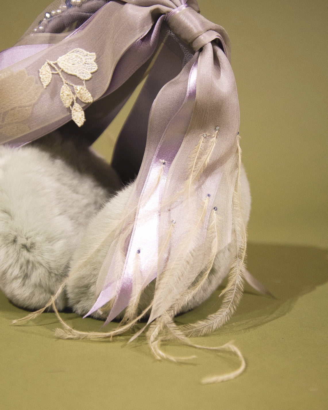 お耳に直接触れる部分には、レッキス種(Rex rabbit)という特別な品種のうさぎの毛皮であるレッキスファーを使用しています。すべての毛が短く、密に揃ったその質感は、まるで産毛のよう。触れた瞬間に驚くほどのなめらかさを感じていただけます。