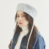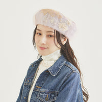 様々な国、年代のレースを集めたコレクションピースの1点物のようなベレー帽。