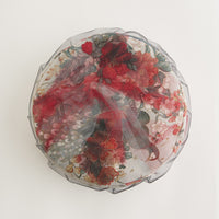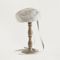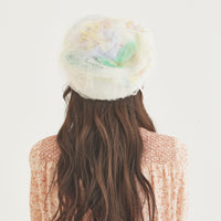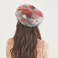 こちらにはITALYのLUSI社の刺繍モチーフを合わせ、手でちぎったチュールを更に組み合わせて印象的な唯一無二のベレーとなりました。