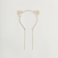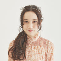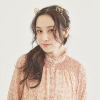 植物と猫耳、パールにラインストーン。幸せを感じる要素をぎゅっと詰め込んだカチューシャは、1点づつパーツを組み合わせ、国内の宝飾職人に依頼して完全なる手作業で製作を行なっております。