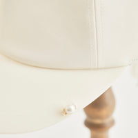 ブリム先端のパールの飾りは、樹脂のパールではなく天然の貝からできていて