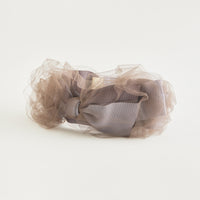 グログランリボンを2色使い、チュールと組み合わせて薔薇のモチーフを表現しました。幻想的な雰囲気になるよう色の重なりに気を配り製作しました。