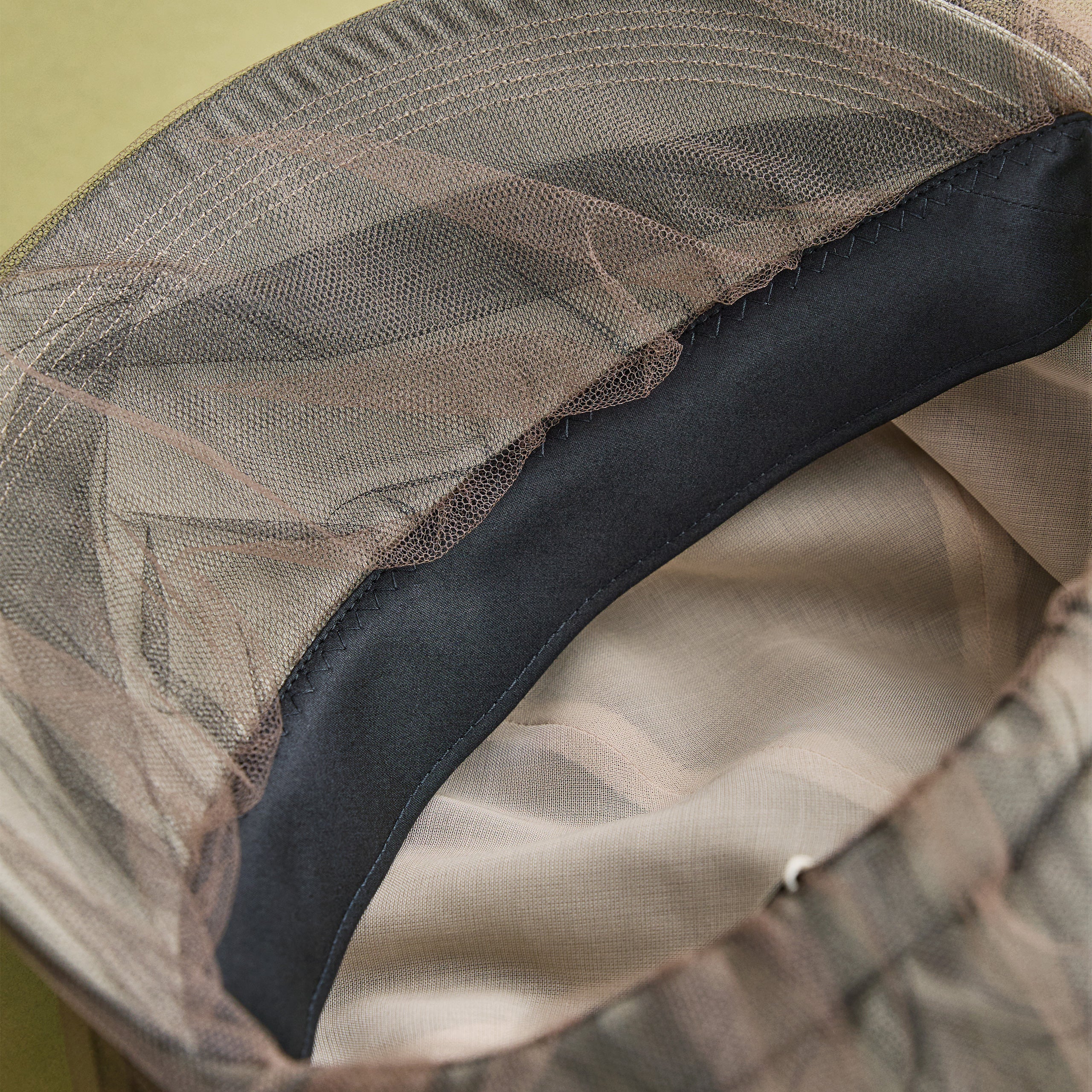 つば部分は左右で微妙に異なるアシンメトリーなライン。ただ被るだけで、自然とこなれた印象になるようにデザインしました。甘いムードのコーディネートにはもちろん、秋のトレンチコートなどトラッドな装いにも美しく溶け込みます。