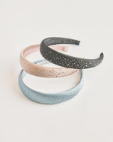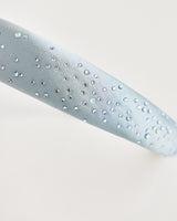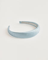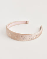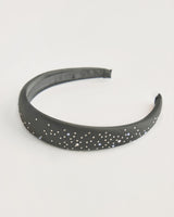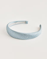 光沢のある上品な肉厚サテン生地に、小さなものは直径約2mmの小粒クリスタルを120粒以上ちりばめたカチューシャです。細かなクリスタルが繊細にきらめき、華やかすぎず上品な印象で、コーディネートのアクセントとして、さりげない輝きを加えます。