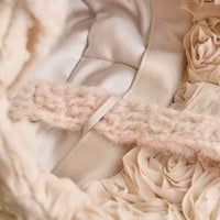 薔薇刺繍生地が華やかで、冬の装いに特別感を添えます。防寒性とデザイン性を兼ね備え、日常使いから特別なお出かけまで幅広く活躍。「薔薇の巣」という名の意味の通り、身に着ける人を優しく包み込みます。